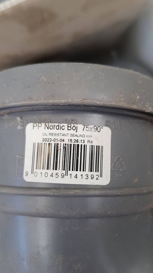 Avloppsrör, böj 75/90° mängd