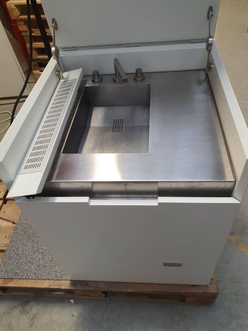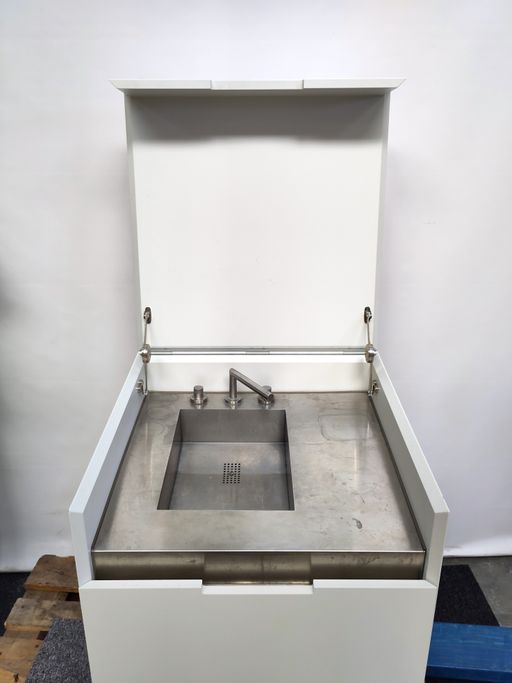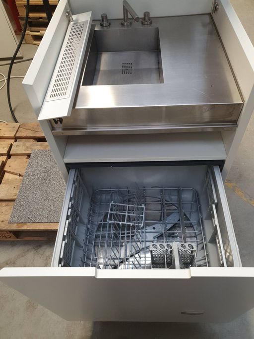 Diskmaskin i utdragslåda med tvättställ